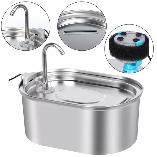 304 Stainless Steel Water Fountain Pet Dog Cat Drinking Dispenser Filter Feeder